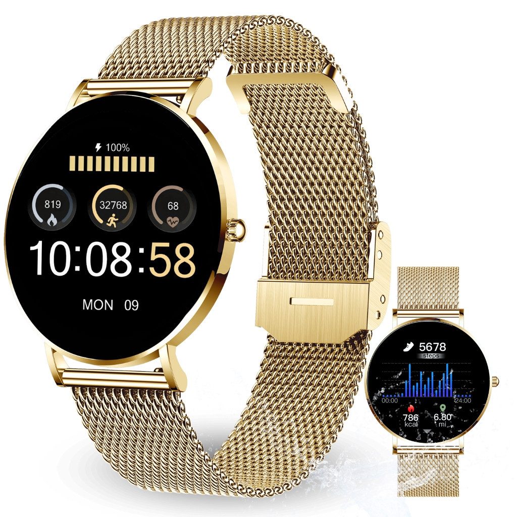 Neben einem stilsicheren Design punktet diese feine Damen Armbanduhr mit vielen hilfreichen Funktionen. Du verlierst deine Gesundheit und Fitness Dank der integrierten Blutsauerstoff-, Blutdruck-, und Herzfrequenzmessung nie aus dem Blick. Es kommen Schritt- und Distanzzähler sowie der Schlaf-Monitor und eine Atemübung hinzu. Dein weiblicher Fitness Tracker SIONA 2 zeigt dir welche Distanzen du zurückgelegt und wieviele Kalorien du dabei verbraucht hast. Der Activity Tracker erinnert dich an regelmäßige Bewegung oder die Notwendigkeit genug zu trinken.