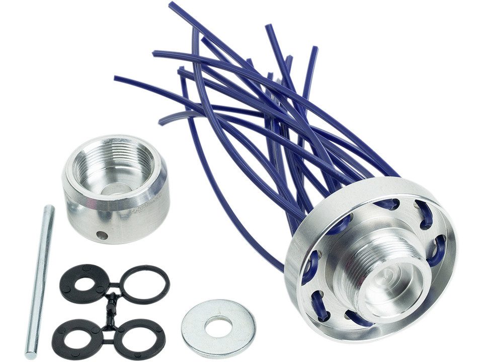 Produktdetails: Material: Aluminium | ökologisch Lösung ohne Chemie | umweltfreundlich | zerstört keine Mikroorganismen | leicht und einfach zu zu montieren | passend für alle Motorsensen mit Messeraufnahme | Inhalt: 8 Nylonfäden 380 mm x 3,3 mm (4-Kant), 1 x Satz Unterleg- und Distanzscheiben (je 1x 20,0 x 25,4 x 2,0 / 8,5 x 35,0 x 3,0 / 10,5 x 35,0 x 3,0 / 12,5 x 35,0 x 3,0 mm), 1 x Arretierungsstift D = 6,0 mm |