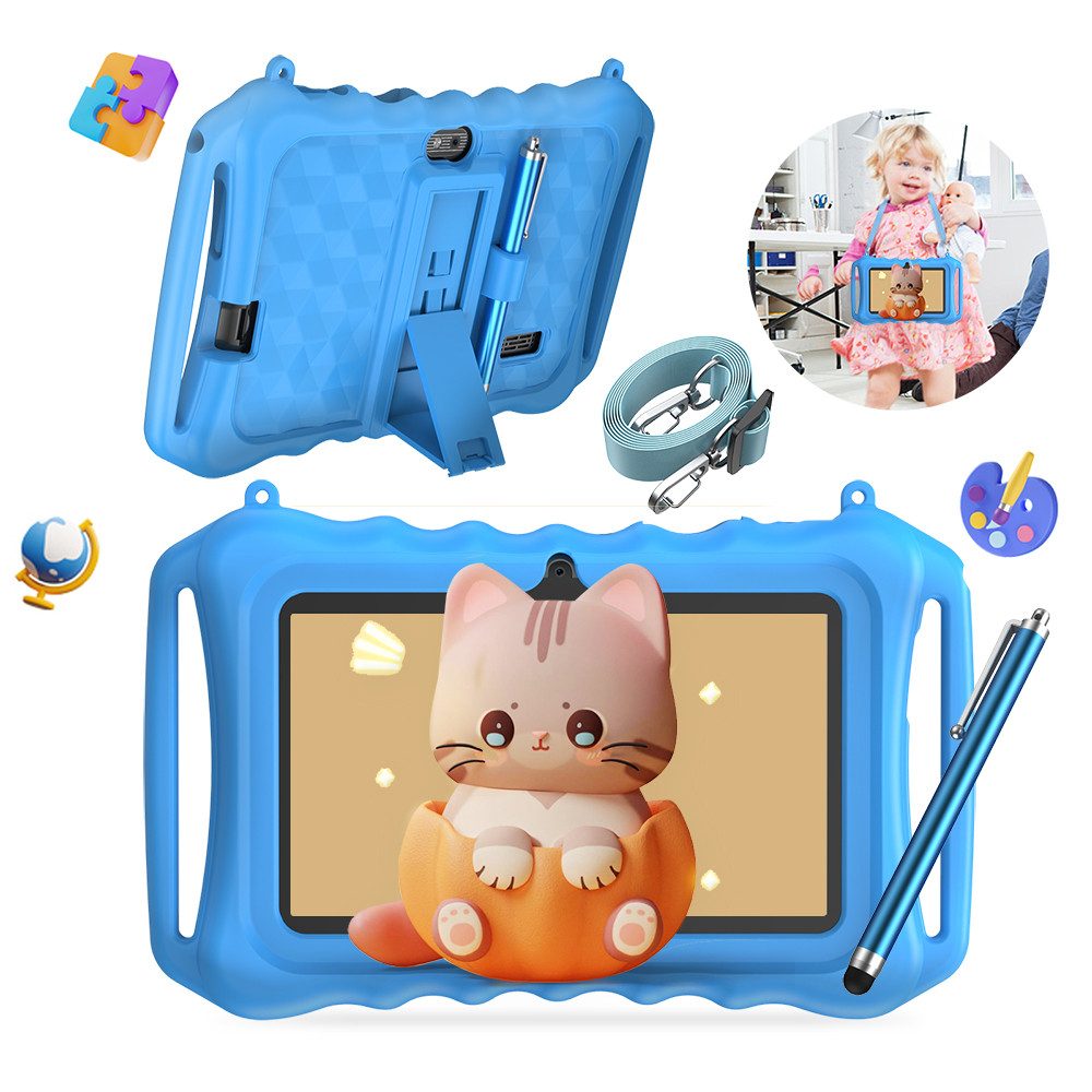Starke Funktionen: Dieses 7 Zoll Kinder-Tablet verfügt über das Betriebssystem Android 12 und ist mit einem Quad-Core-Prozessor ausgestattet, der eine flüssigere Bedienung der Anwendungen ermöglicht. Es unterstützt WLAN und Bluetooth; der 1024 x 600 IPS-Bildschirm bietet eine höhere Bildqualität. Mit 3 GB RAM und 32 GB ROM kann der Speicherplatz mit einer zusätzlichen microSD-Karte erweitert werden, um mehr Fotos, Musik und Videos zu speichern.