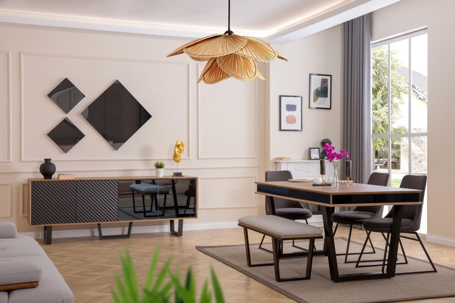 Serie | 10tlg Esszimmer Set (Esstisch+4xStühle+Bank+Sideboard + 3x Spiegel ) |