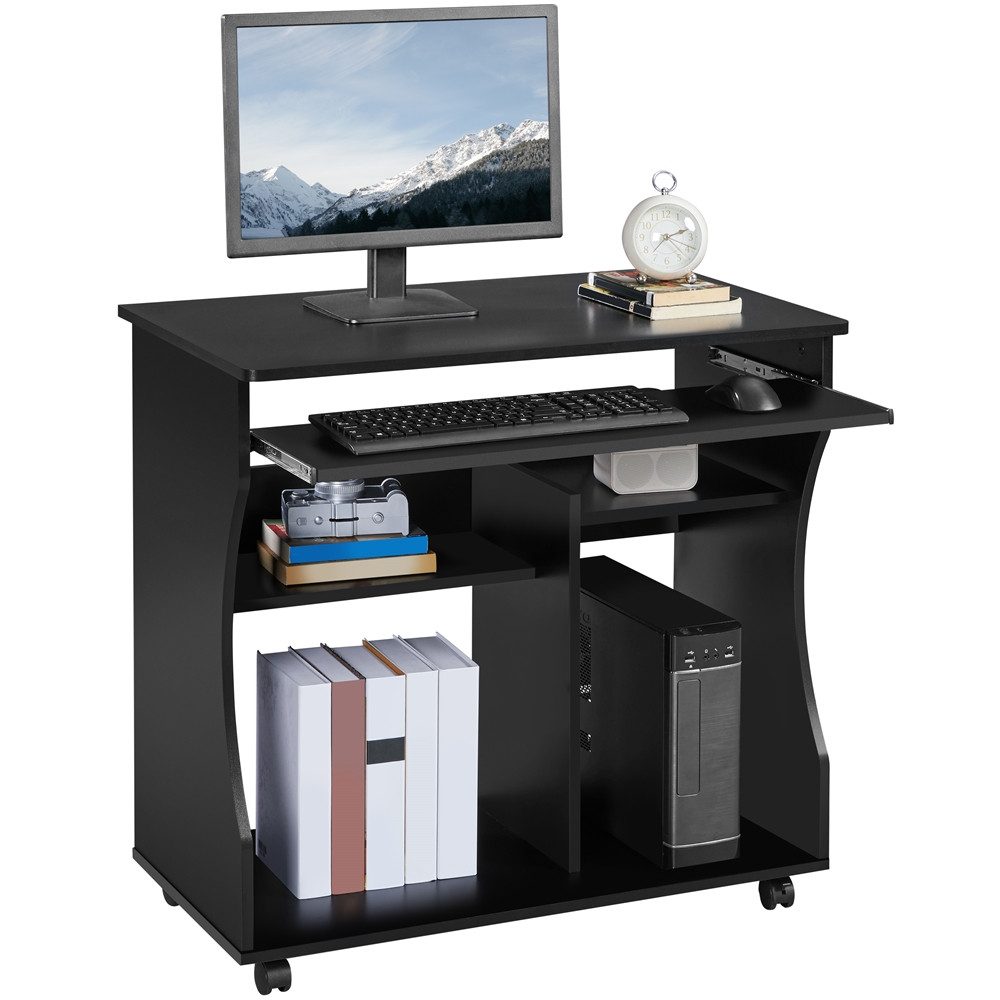 Suchen Sie nach einem praktischen Computertisch für Ihr Arbeitszimmer? Werfen Sie einen Blick auf diesen Tisch auf Rollen! Dieser Arbeitstisch verfügt über eine breite Tischplatte, einen bequemen Tastaturauszug, zwei Ablagefächer darunter und eine solide Bodenplatte. Hier können Sie Ihren Monitor, PC, Tastatur, Musikbox, Bücher, Dokumente und andere Büroutensilien ordentlich aufbewahren. Der PC-Tisch steht auf vier mobilen Rollen (zwei davon mit Bremsen). Dieses Design ermöglicht ein flexibles Verschieben des Schreibtisches, sodass Sie Ihren Büroraum offen gestalten können. Dieser Schreibtisch eignet sich ideal für den Einsatz in den kleinen Räumen, wie im Wohnzimmer, Arbeitszimmer, Heimbüro, Schlafzimmer und dergleichen.