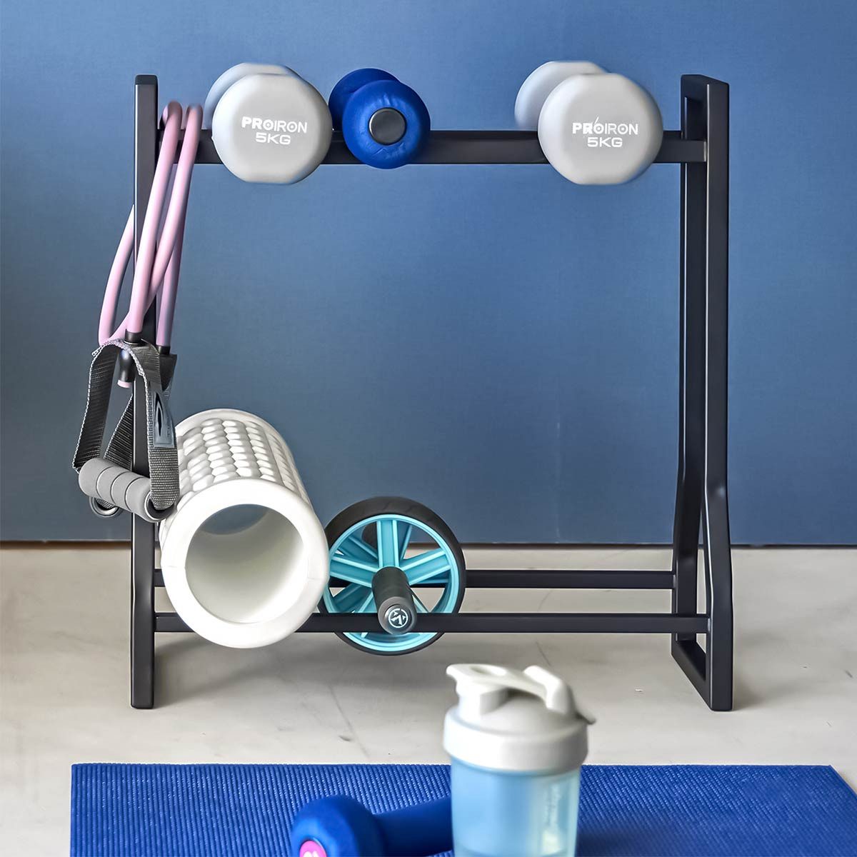 Das Regal verfügt über zwei robusten Ablagen, die perfekt geeignet sind, um Ihre Hanteln und Fitnesszubehör ordentlich zu organisieren. Die obere Ablage ist mit Anti-Roll-Mulden ausgestattet, die einen sicheren Halt Ihrer Kurzhanteln garantieren, während sie mit einer Belastbarkeit von bis zu 40 kg auch den Anforderungen intensiver Workouts standhält. Die untere Ablage bietet zudem Platz für Ersatzgewichte und weiteres Zubehör und ist mit einer Belastbarkeit von 50 kg ausgelegt – ideal, um alle Ihre Fitnessutensilien stets griffbereit zu haben.