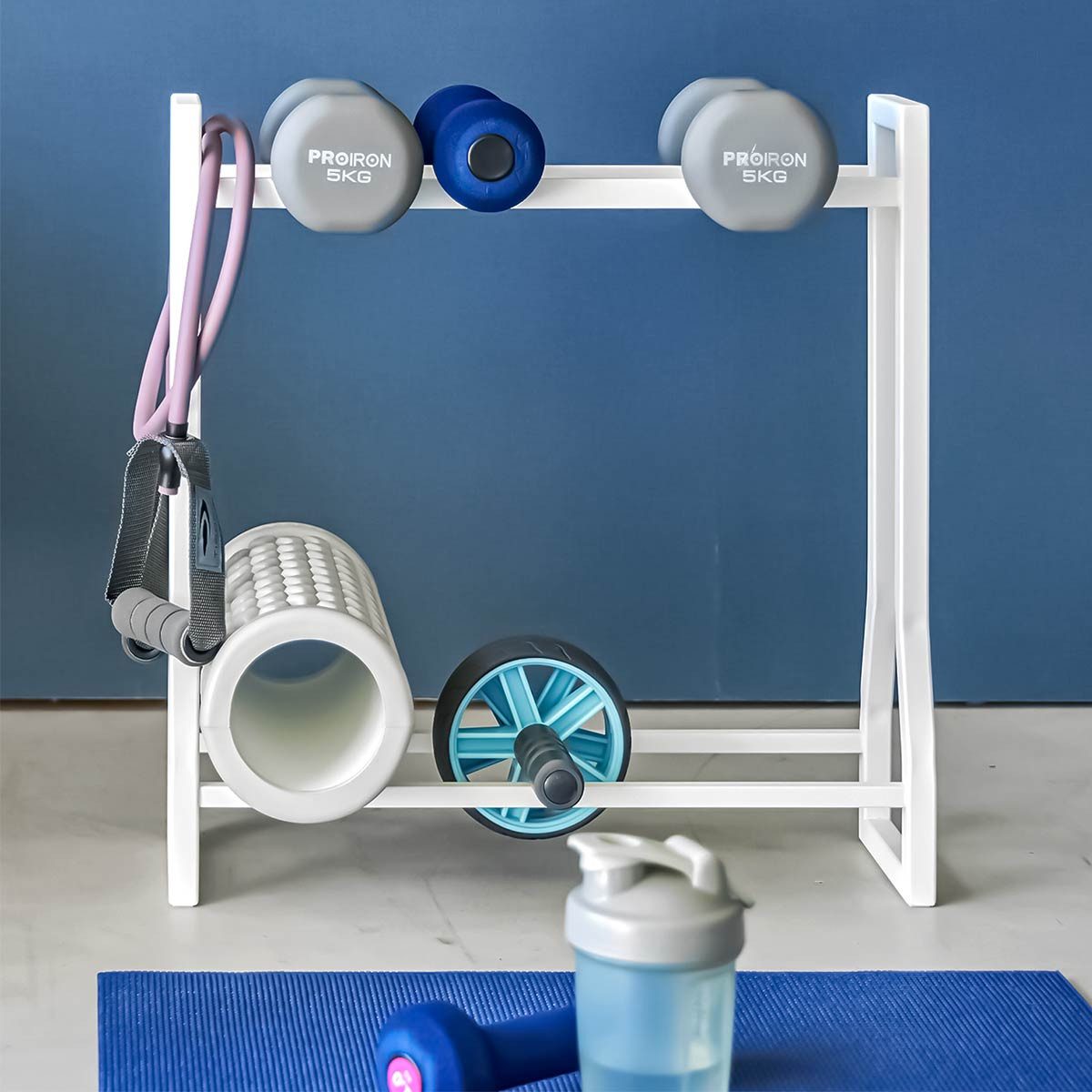 Verleihen Sie Ihrem Fitnessbereich einen Hauch von Eleganz mit dem weißen Kurzhantelständer von Yamazaki Home!