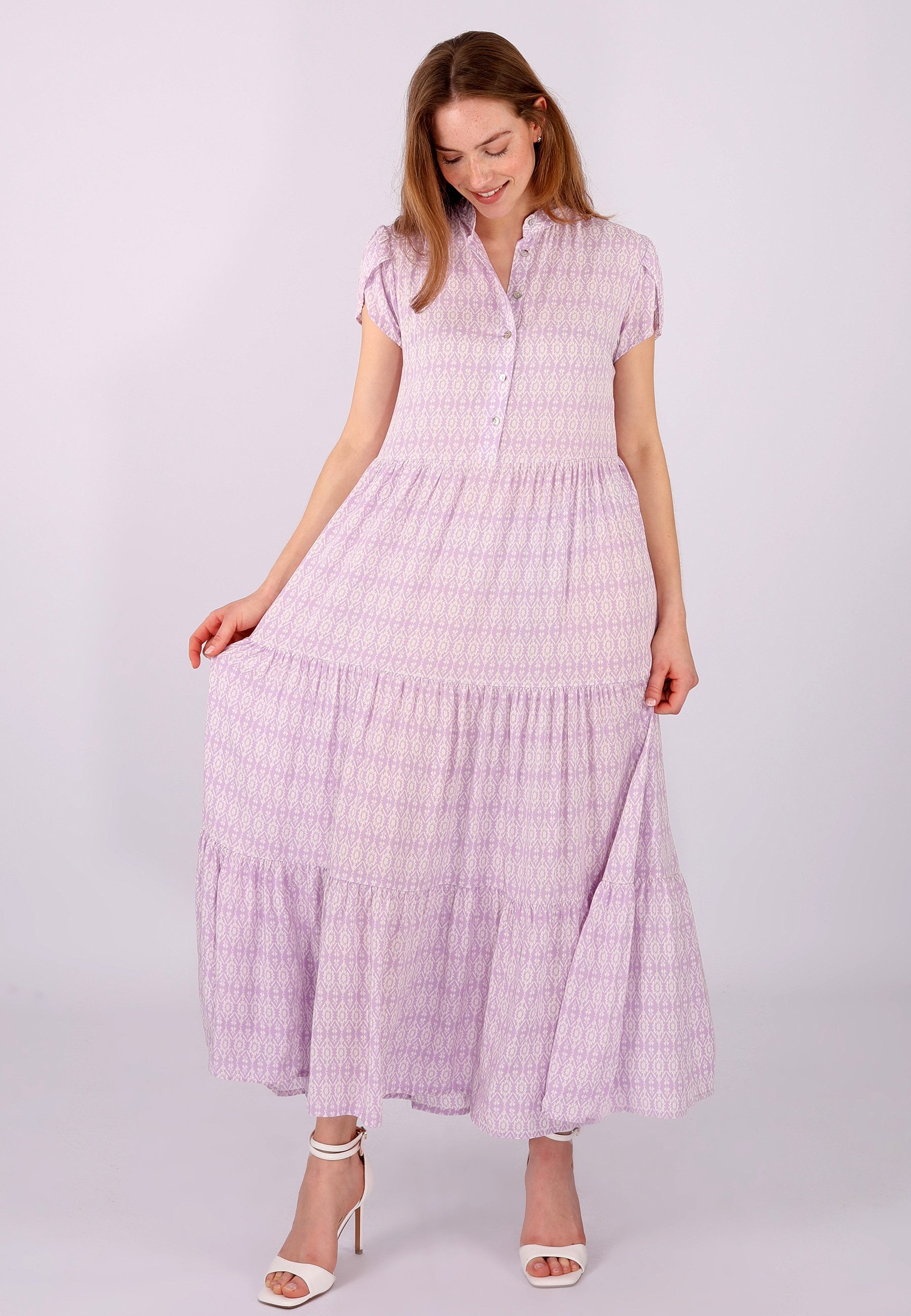 Sorgen Sie für einen frischen Wind in Ihrer Sommergarderobe mit unserem zauberhaften Boho-Maxikleid. Das fliederfarbene Kleid aus 100% Viskose ist nicht nur ein Hingucker, sondern überzeugt auch durch seinen unglaublichen Tragekomfort.