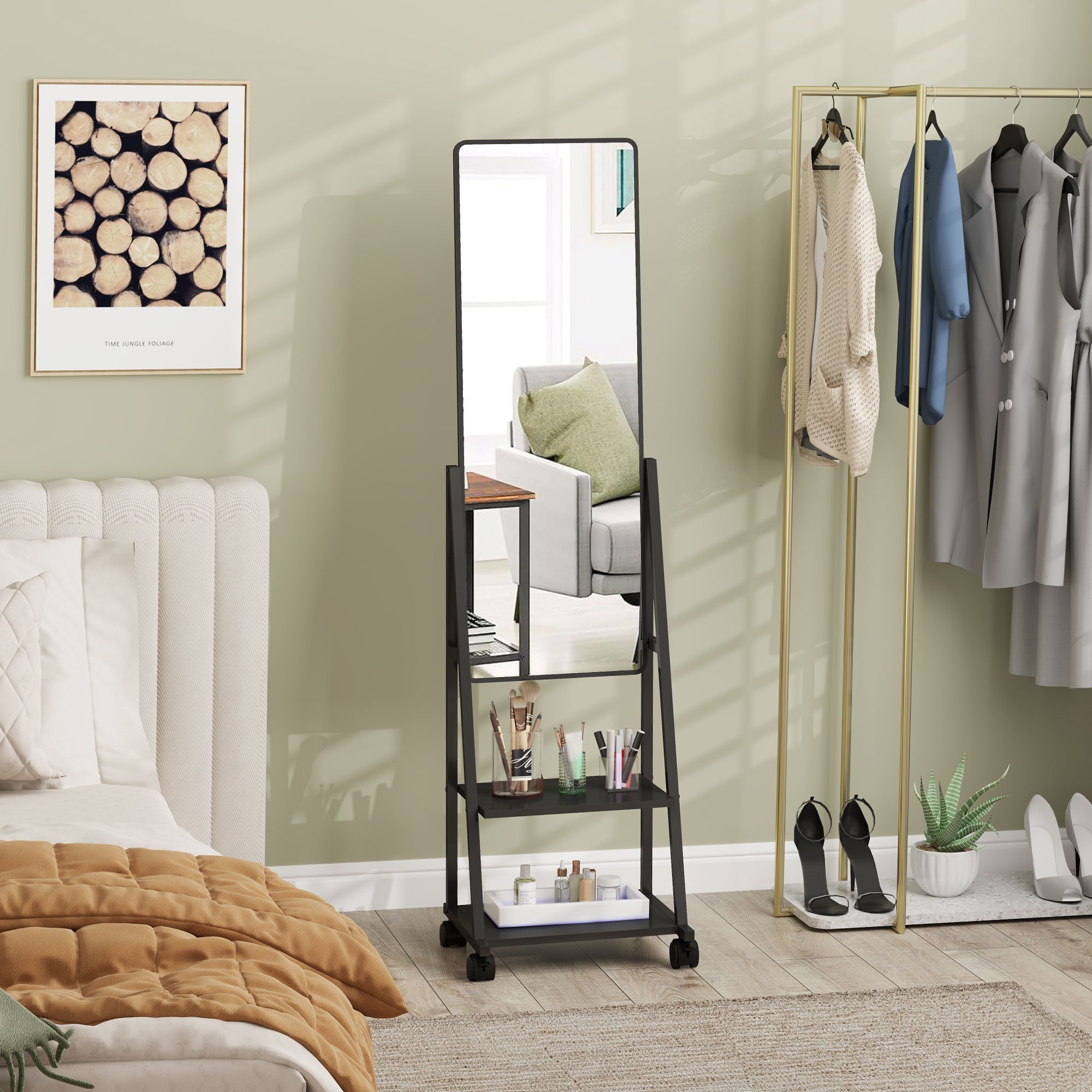 Warum sollte ein Spiegel nur reflektieren, wenn er auch nützlich sein kann? Die zwei integrierten Regale machen diesen Stehspiegel zum praktischen Helfer im Alltag: