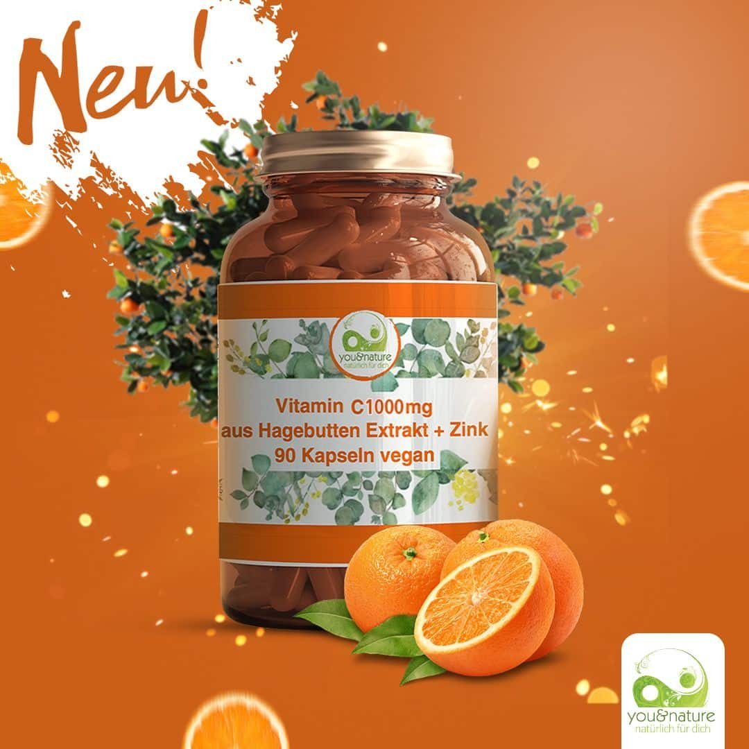 Bezeichnung des Nahrungsergänzungsmittels | Vitamin C 1000 mg 90 Kapseln aus Hagebutten Extrakt + Zink vegan |