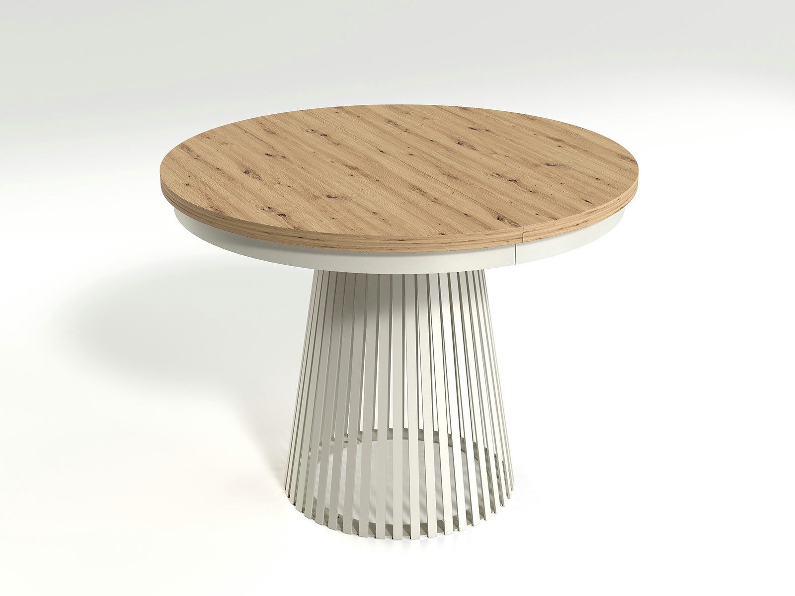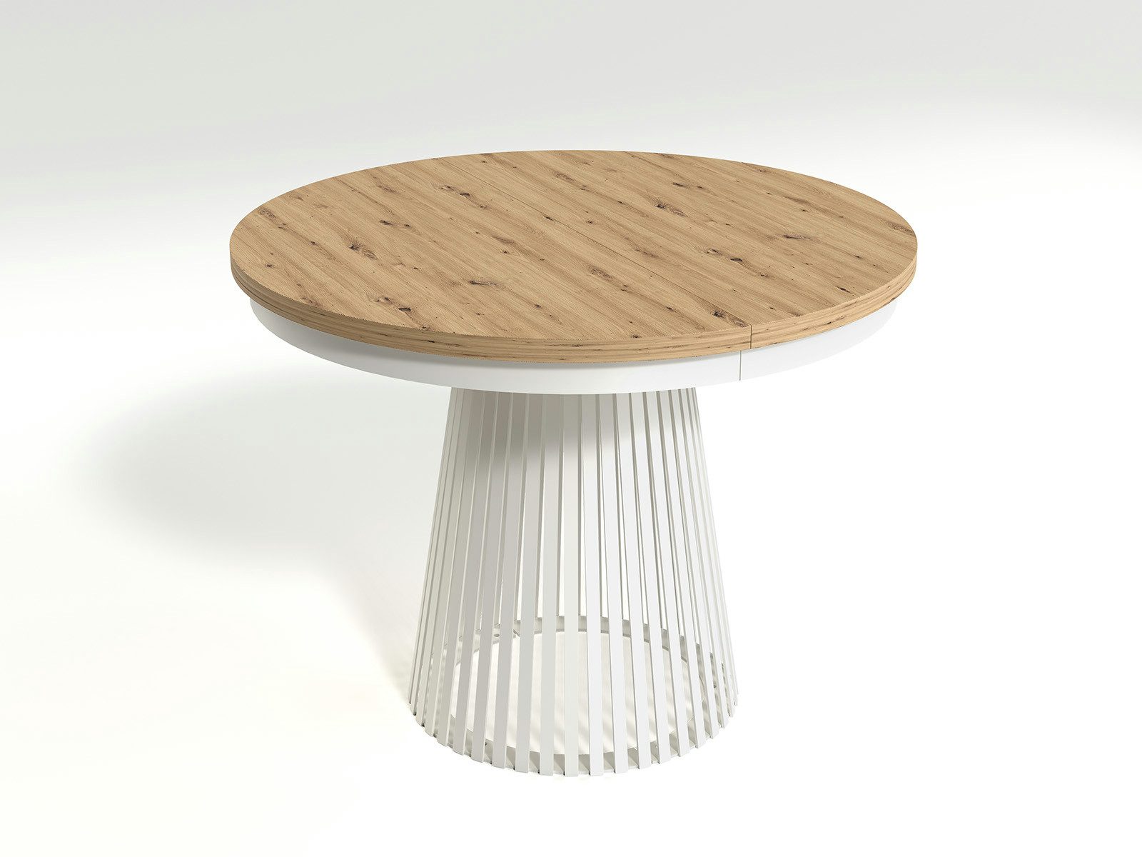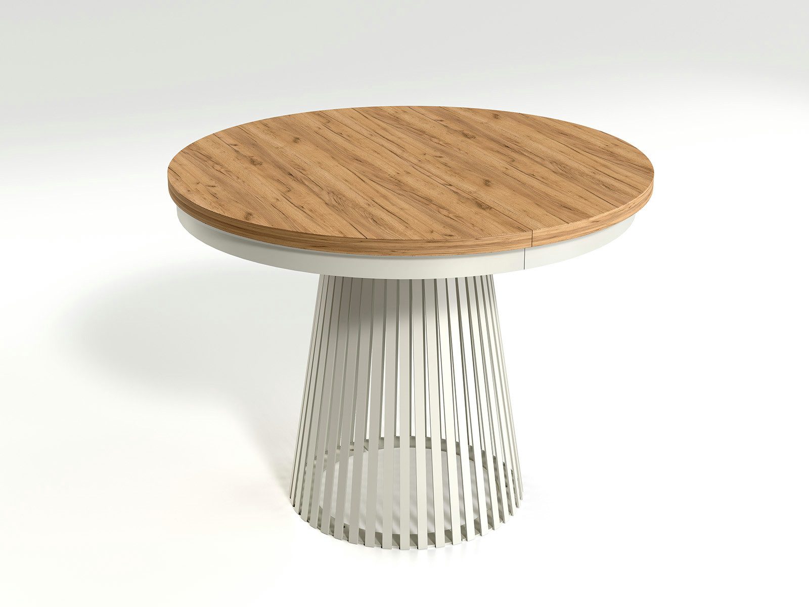 Modern, elegant, funktional. Der runde Esstisch GARDA verbindet klare Linien mit praktischer Erweiterung: Die Platte lässt sich um 80 cm vergrößern (2 × 40 cm) – ideal für Alltag und Gäste. Das pulverbeschichtete Metallgestell sorgt für Stabilität und einen leichten, designorientierten Look. Die laminierte Tischplatte (32 mm) mit ABS/PCV-Kante ist robust und leicht zu reinigen.