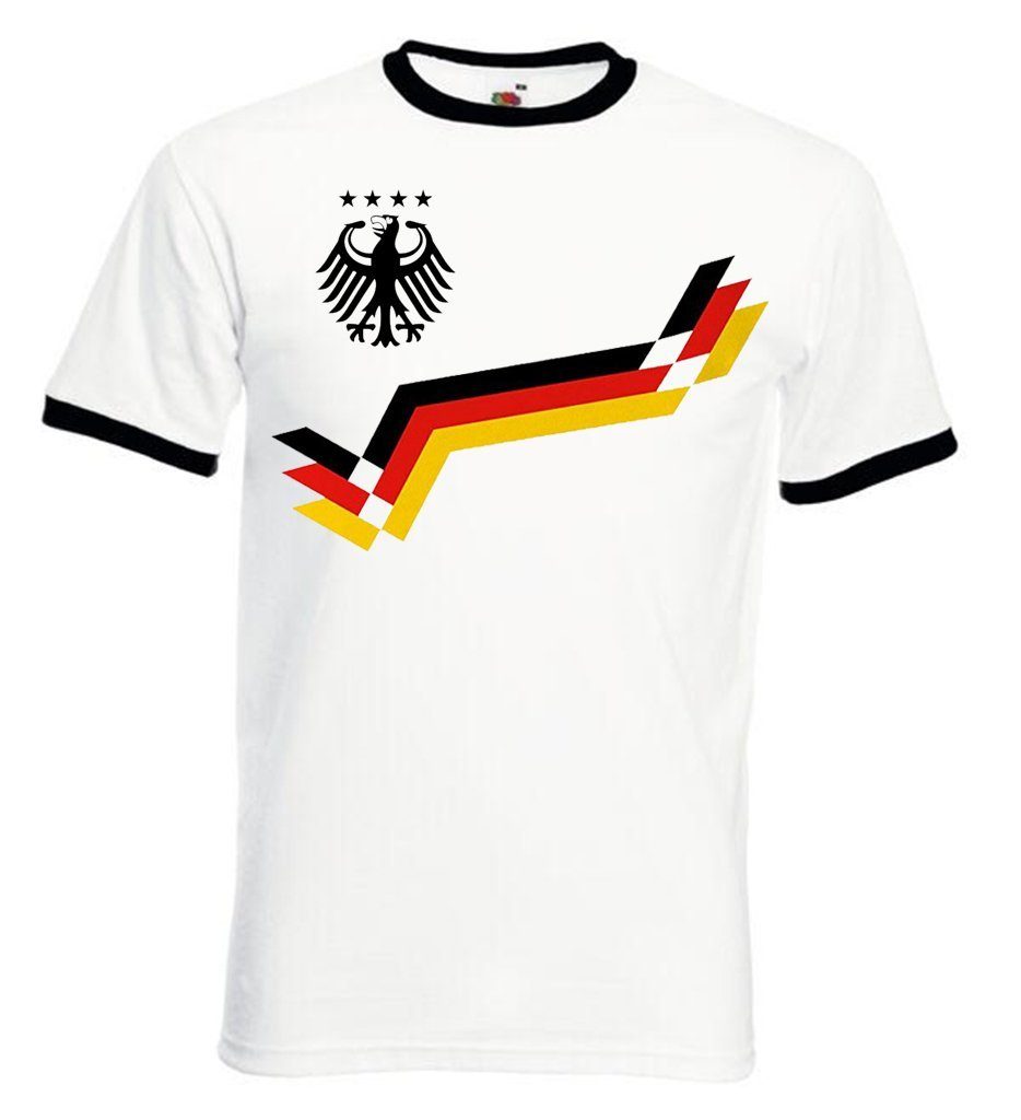 Das mit Adler Wappen und Flagge verzierte Print Deutschland T-Shirt eignet sich bestens zur Fußball WM, Basketball EM, Handball Turnier, Olympia und anderen Sport Veranstaltungen.