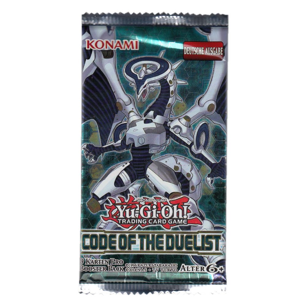 Yugioh - Code of the Duelist ist das erste Set mit Linkmonstern und beinhaltet neue Themendecks sowie den mächtigen Firewall-Drachen. Jedes Boosterpack beinhaltet 9 zufällige Karten, darunter 7 Commons, 1 Rare und eine Holokarte