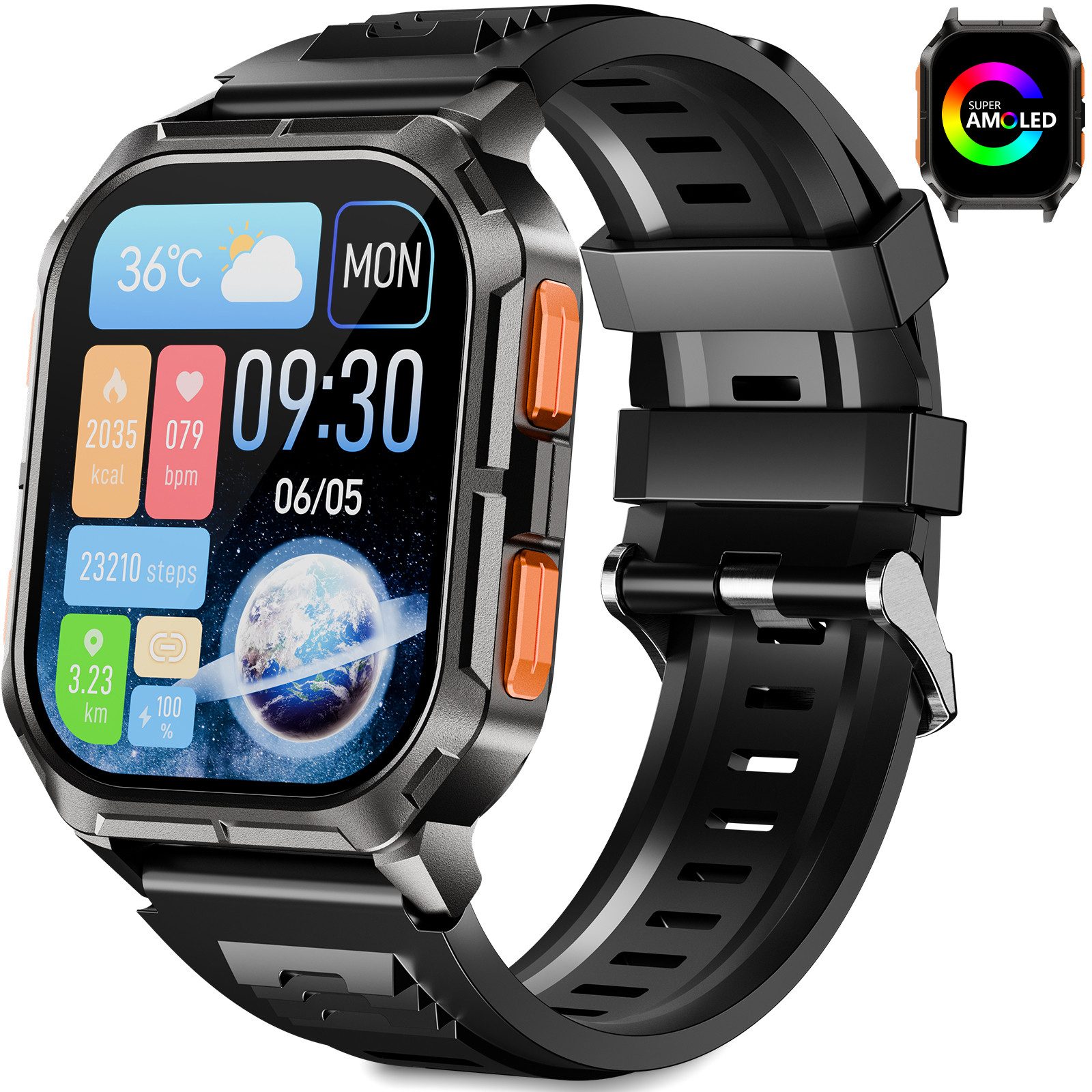 Zusatzfunktionen | Blutsauerstoff Schlaftracking Druckmessung Herzfrequenzmessung Aktivitätstracking Kalorienverbrauch Timer Rechner Atemübungen Wecker KI-Assistent Musiksteuerung Kamera-Steuerung Wettervorhersage Stoppuhr Trinkwasser-Erinnerung Mini-Spiele Lautsprecher |