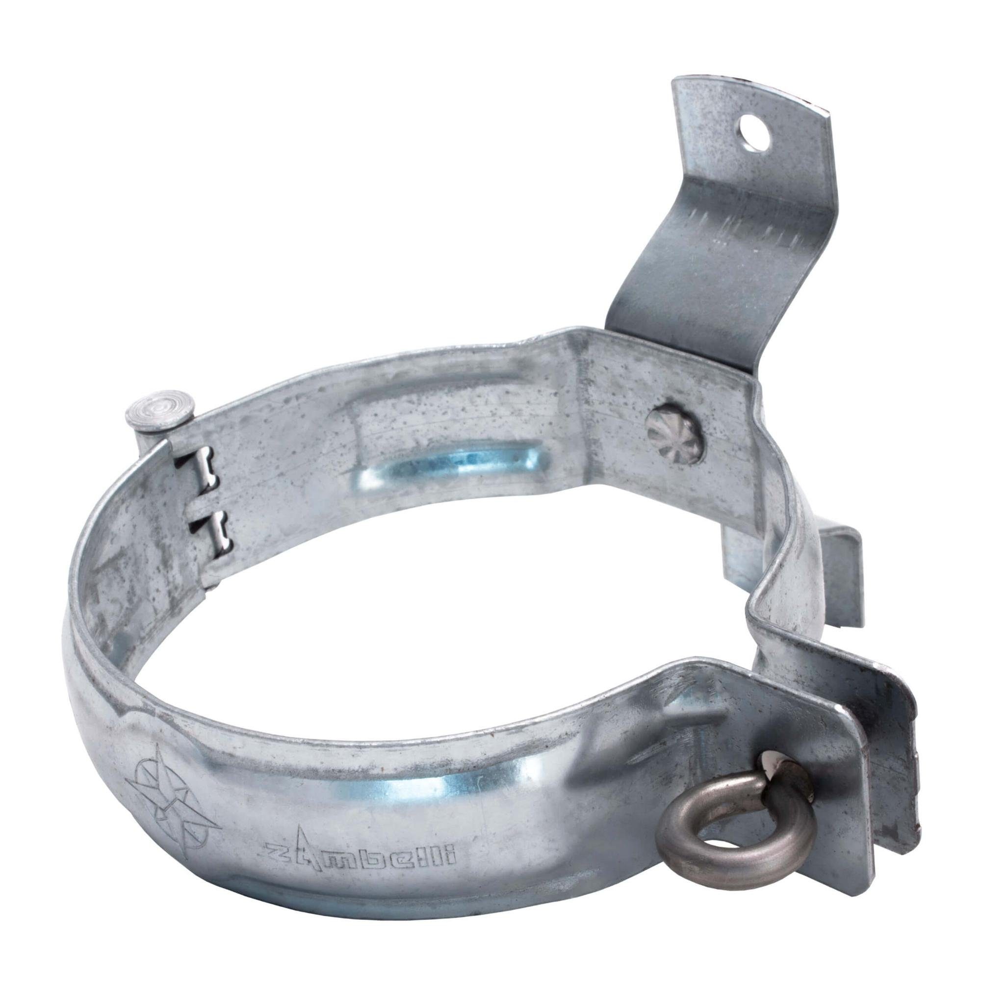 Die Ablaufrohrschelle von Zambelli ist speziell für eine Holzmontage zu verwenden. Die zwei Bohrlöcher eignen sich hervorragend, um das Regenfallrohr an einem Holzbalken anzuschrauben. Die Schelle ist mit einer arretierten Gegenmutter versehen und lässt sich mithilfe von zwei Holzschrauben einfach an die Holzwand montieren. Aus hochwertigem, verzinktem Stahl gefertigt, ist sie formstabil und weist einen hohen Korrosionsschutz auf. Daneben ist ihre Montage einfach und schnell, überdies hat die Rohrschelle auch eine hohe Produktlanglebigkeit.