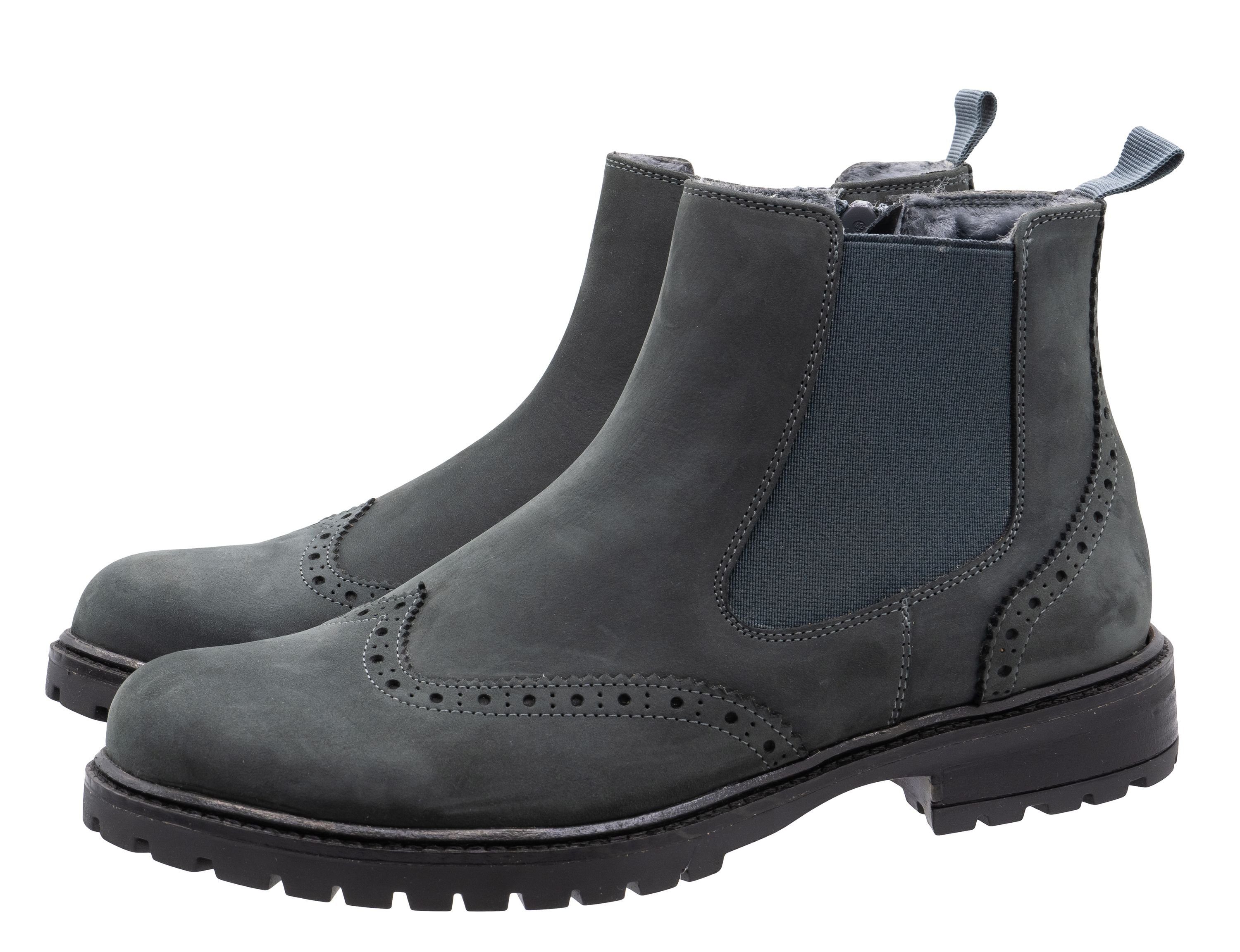 Klassische Chelsea Boots mit Budapester Muster aus Nubukleder.