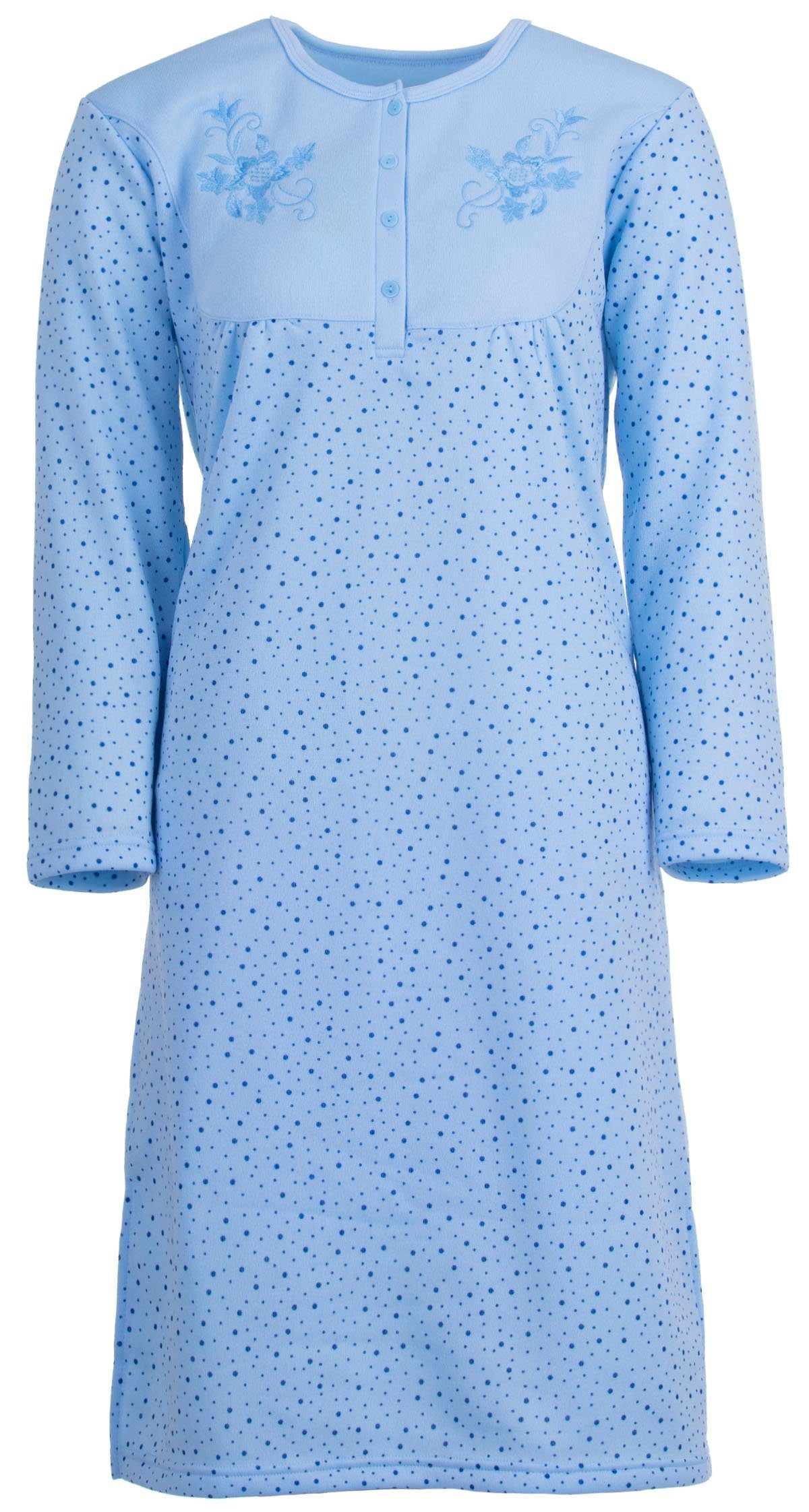 -Lilly- ist eine weitere Mitwirkende im unserer Zeitlos Thermo-Kollektion. Charakteristisch ist das Zusammenspiel zwischen mini und mittelgroßen Punkten, die Harmonie zur Stickerei im Dekolleté - Bereich und die 3-Perlmutt Knopfleiste.