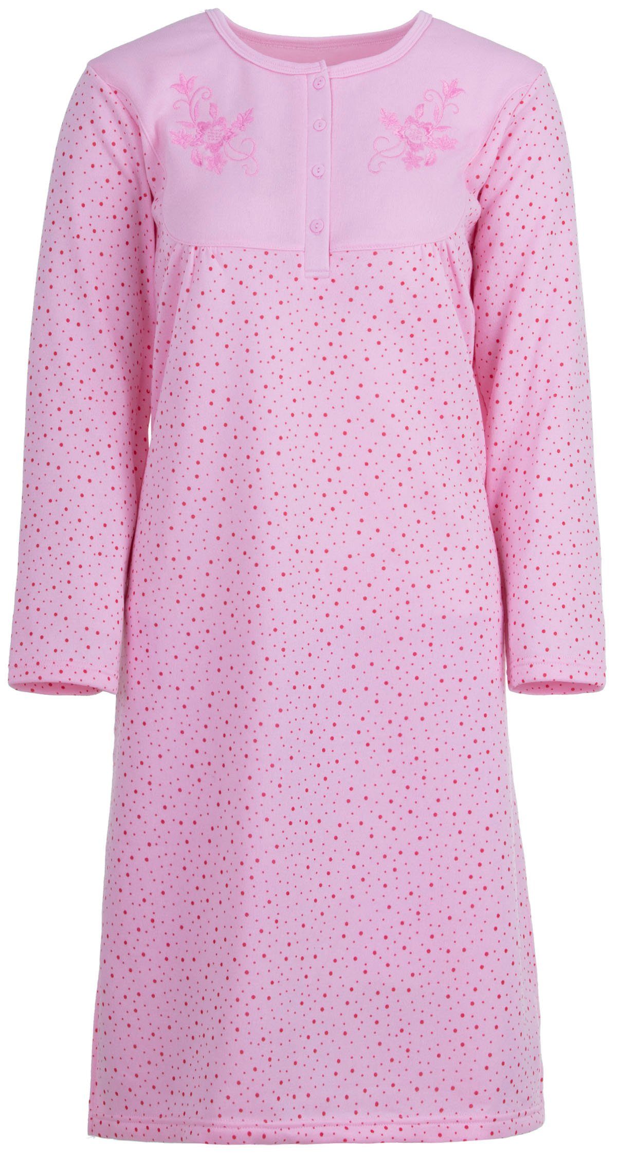 Für besseren Tragekomfort ist das Nachthemd mit Seitenschlitzen am Saum ausgestattet. Die dargestellten Farben können leicht vom Original abweichen. Wählen Sie zwischen apricot, flieder, blau und rosa.