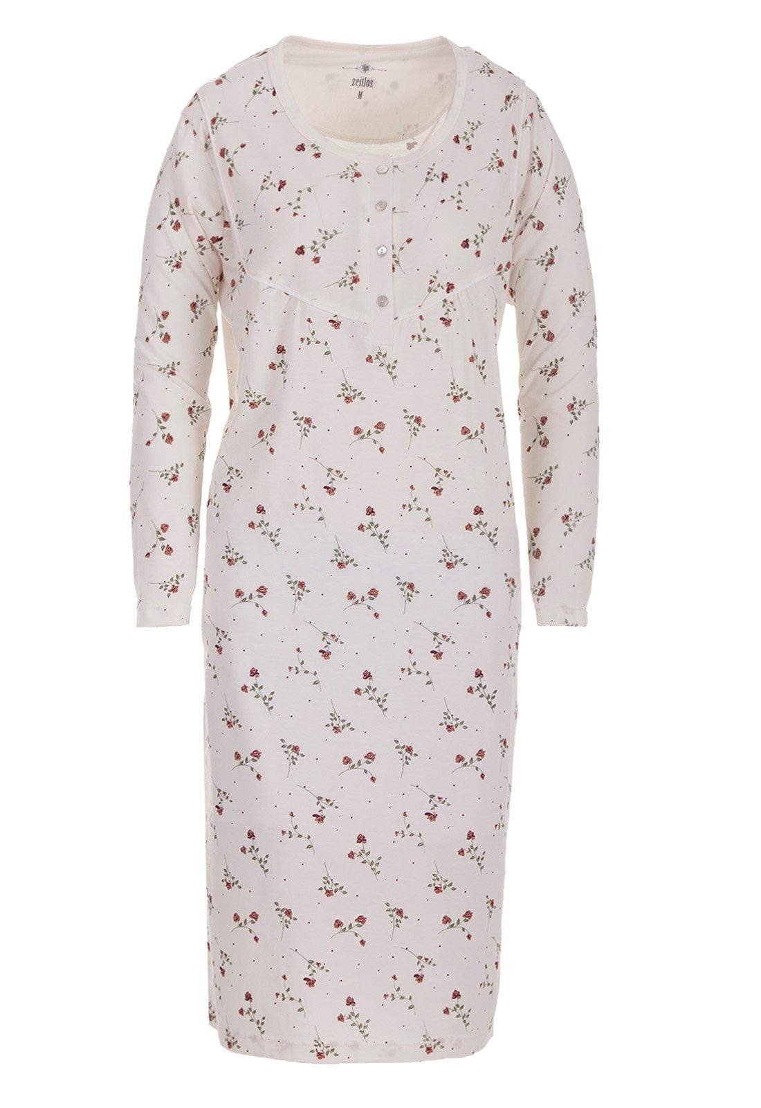 Das zart fließende Single-Jersey Nachthemd von zeitlos mit langem Arm in weicher Qualität beschert Ihnen traumhafte Nächte. Das Dessin ist ein Rosenmuster.