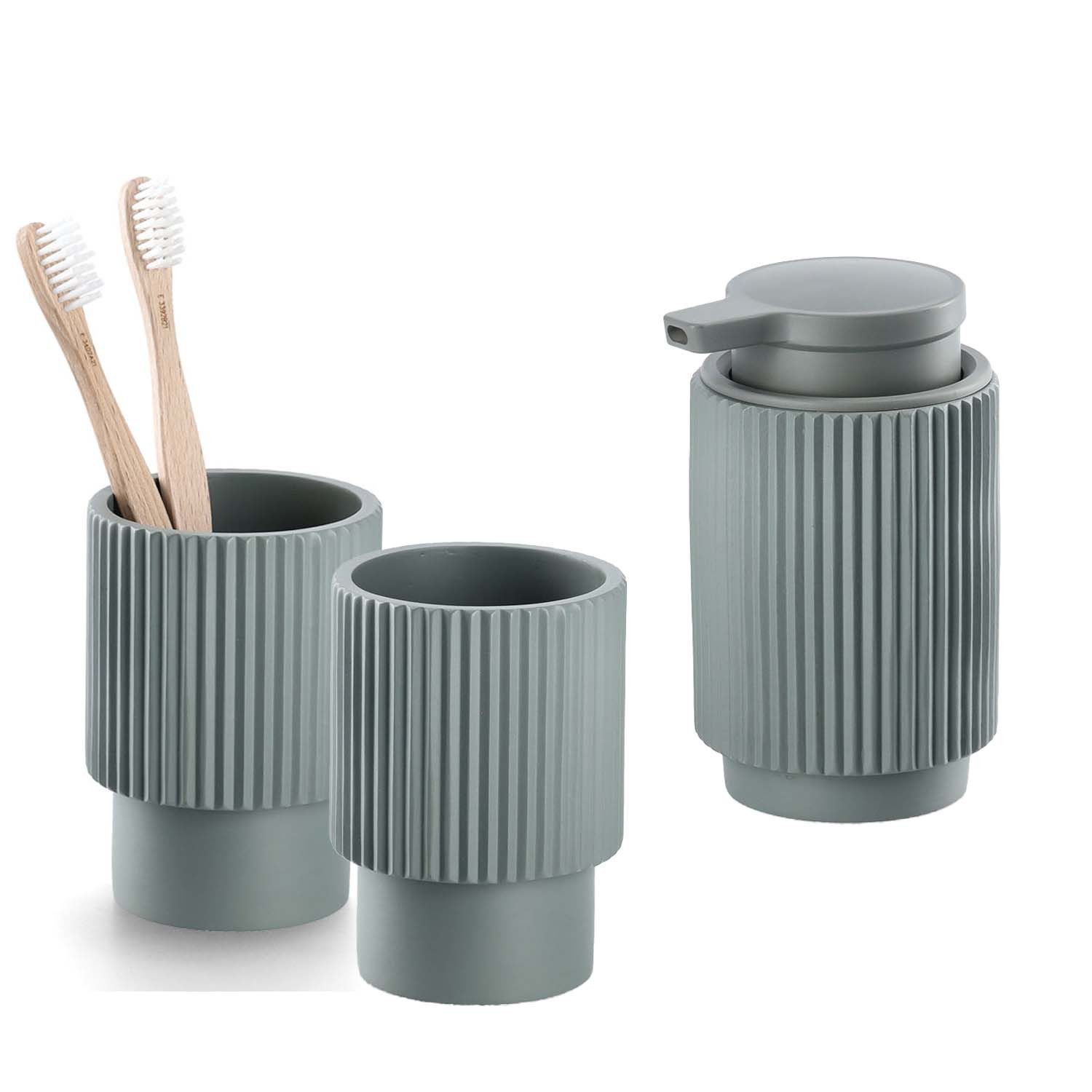 Mit dem 3-teiligen Badaccessoire-Set in angesagter Rillenoptik setzen Sie trendige Akzente in Ihrem Badezimmer.