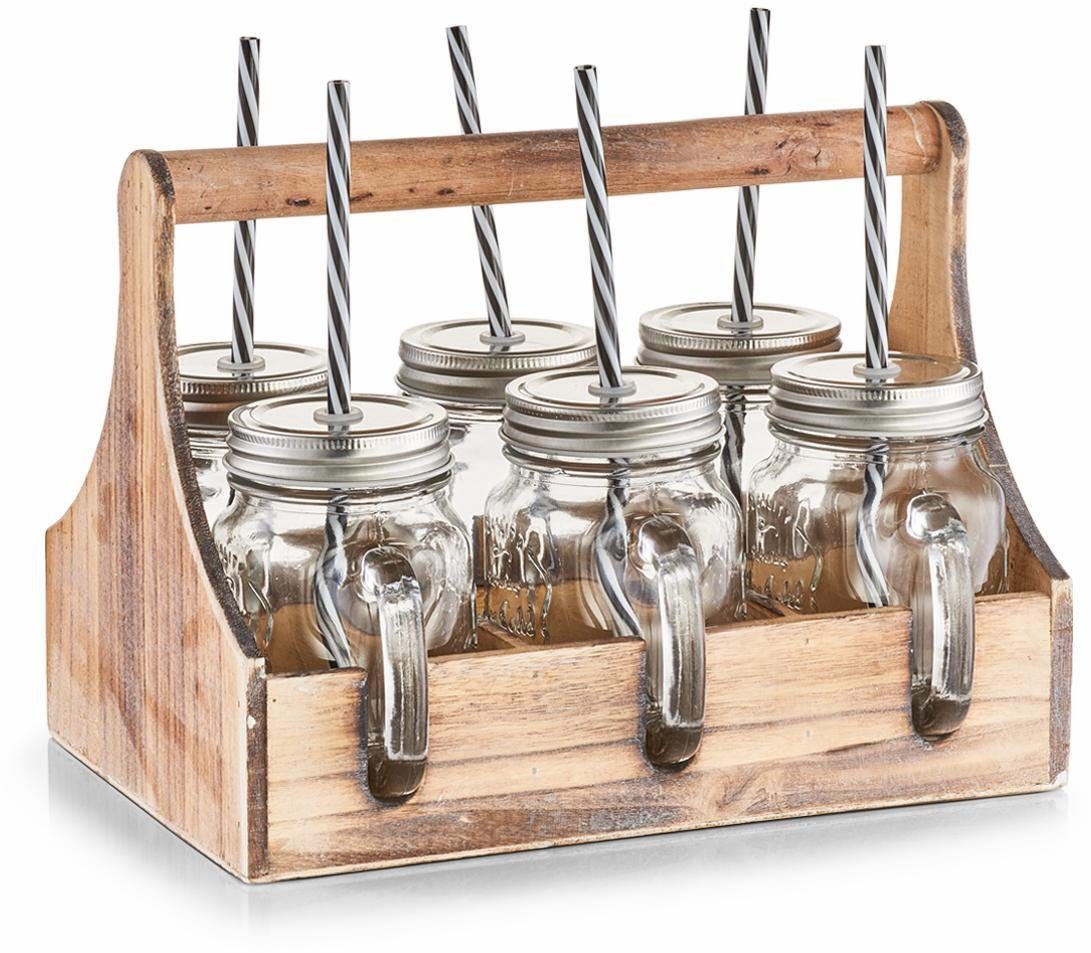 Lieferumfang | 6 x Trinkgläser, Deckel, Holzkiste, Strohhalm |