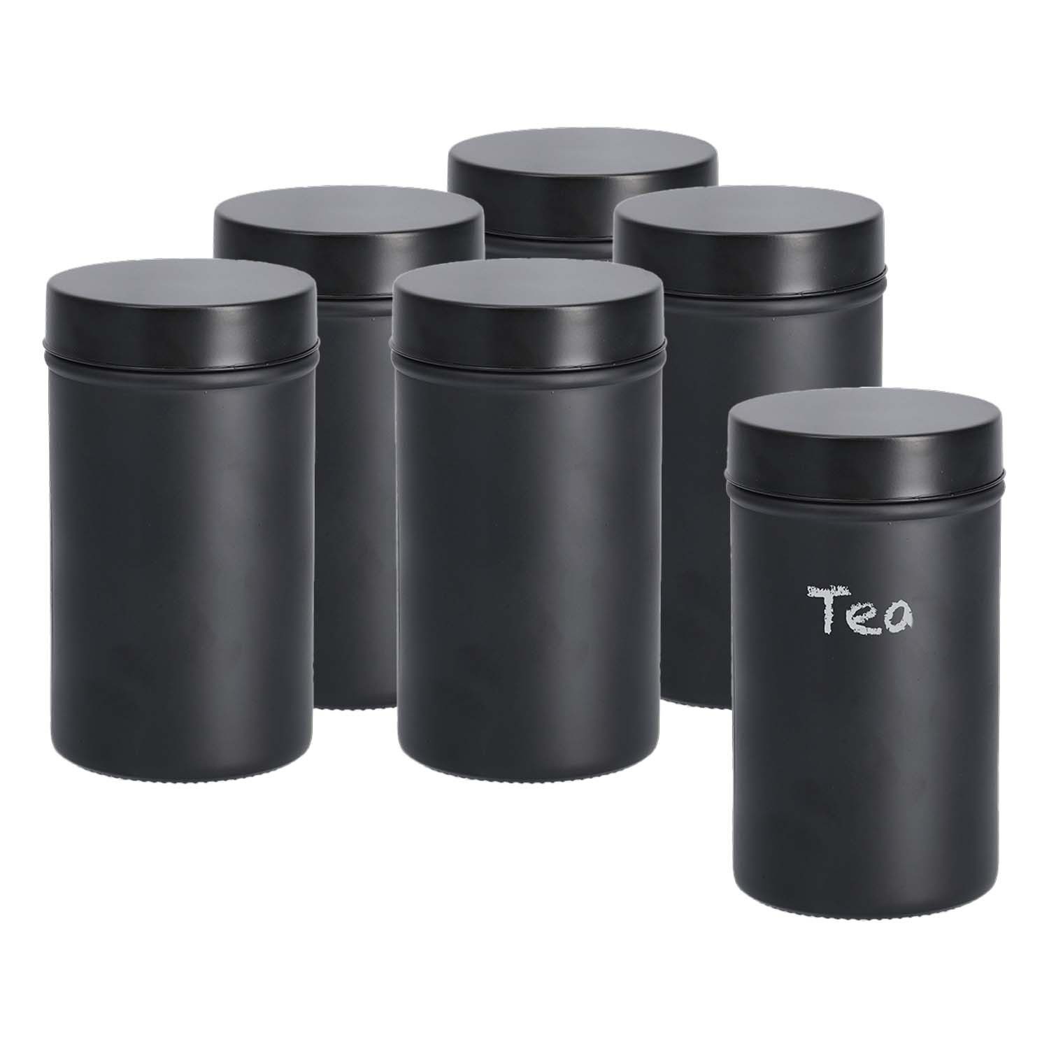 1x 6er Set Vorratsgläser zum Beschriften, schwarz - Ø 10 x 17,8cm