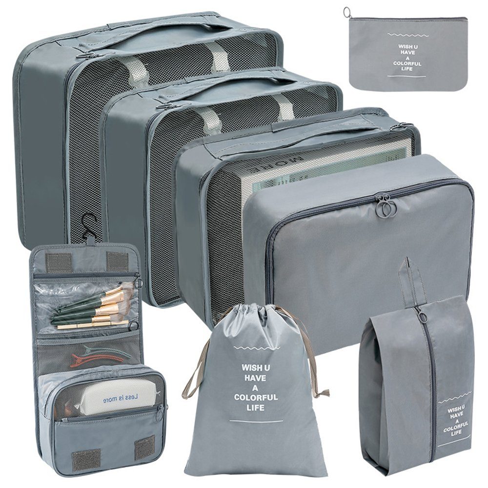 Komplettes SetEnthält 4 Kleidersack,2 Aufbewahrungstaschen für Schuhe und Kosmetik,1 kordeltasche für schmutzwäsche, 1 Kabeltasche für Kopfhörer, Schlüsselusw.