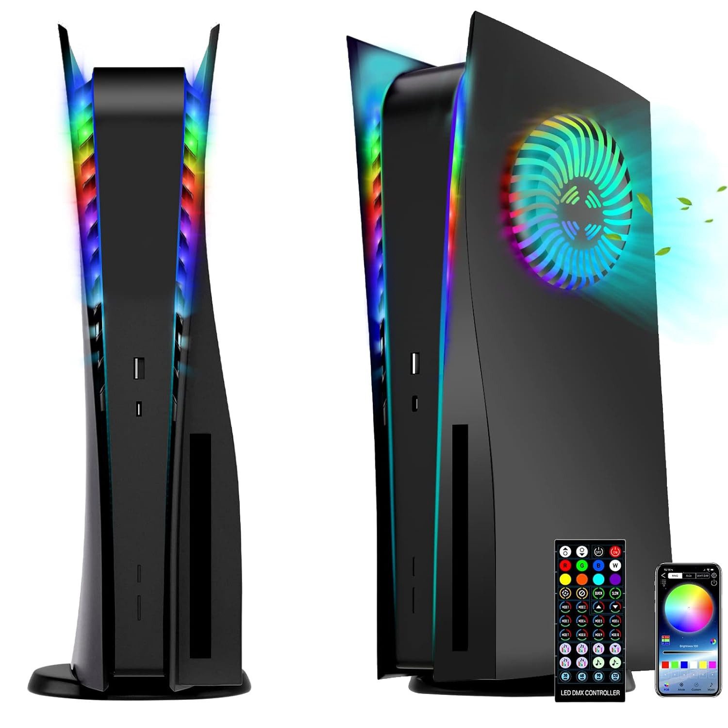 Einfache Installation: Heben Sie diehintere Ecke der Schutzabdeckung an, und lösen Sie die runde Schnalle. DrückenSie die Abdeckung nach unten in Richtung der Unterseite der Konsole, und dieAbdeckung wird abrutschen. Kleben Sie den konfigurierten Selbstkleber auf dieRückseite des LED-Lichtrings und befestigen Sie ihn dann an der Lüftungsöffnungder PS5-Konsole.Richten Sie die neue Abdeckung mit dem Loch auf derHaupteinheit, schieben Sie es bis zu der Oberseite der Konsole.