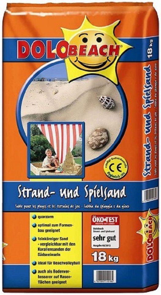 Dieser quarzarme Sand (!) ist optimal zum Spielen und Formenbau geeignet. Der Strand- und Spielsand der Marke Dolobeach ist ein feinkörniger Sand der vergleichbar ist mit den Korallensanden der Su?dseeinseln. Verschmutzter Sand kann z.B. im Herbst auch als Bodenverbesserer im Garten und auf Rasenflächen verwendet werden. Bzw. nach dem Rasen lüften. Eine Bodenverbessernde Wirkung ist vor allem darauf zurückzuführen, dass sich Dolobeach Sand im Boden langsam auflöst und dabei wertvolle Calcium- und Magnesiumionen abgibt.