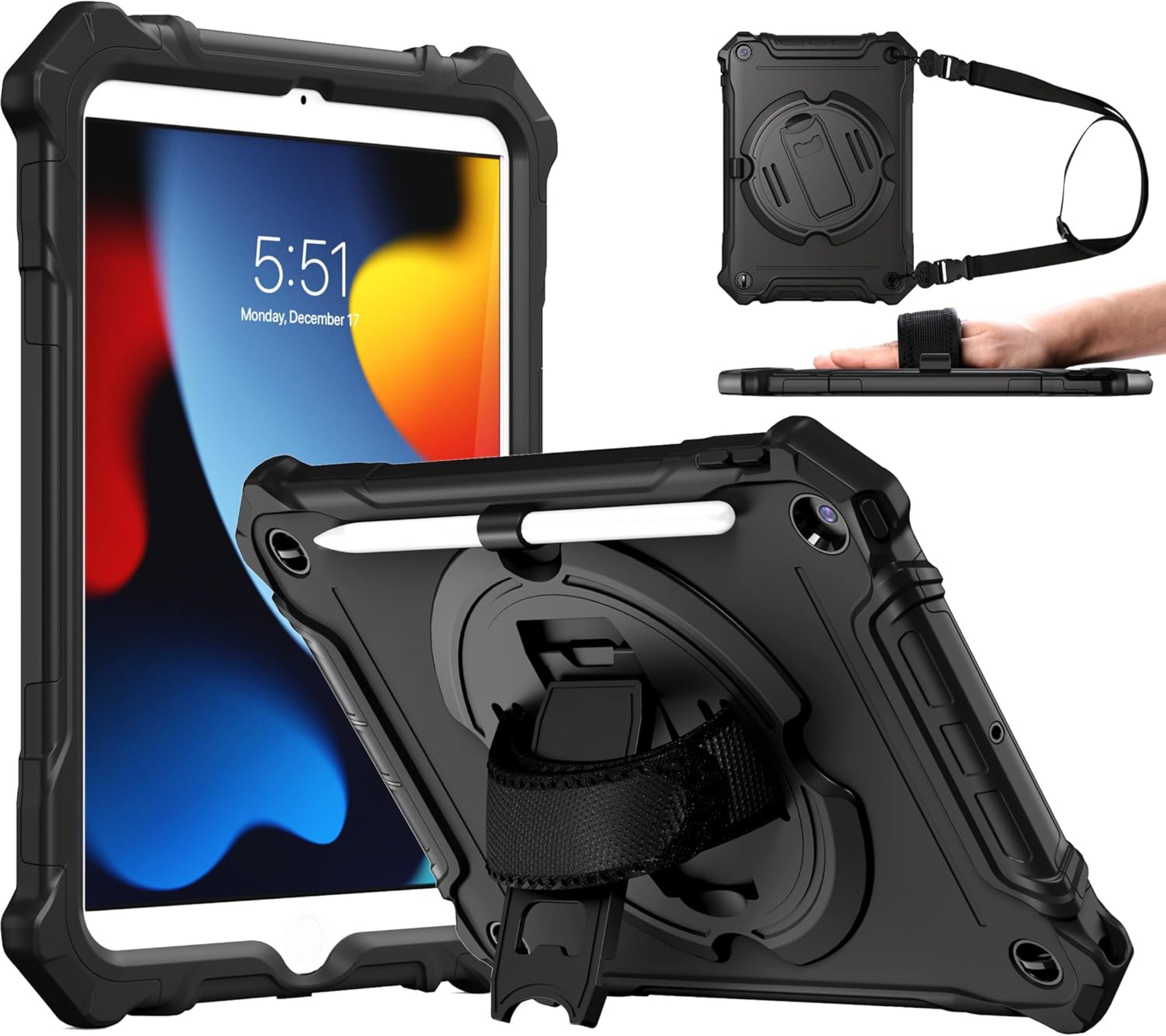 Besondere Merkmale | Stoßfeste iPad 10.2 Hülle mit Ständer, Schultergurt & Schutzfolie |
