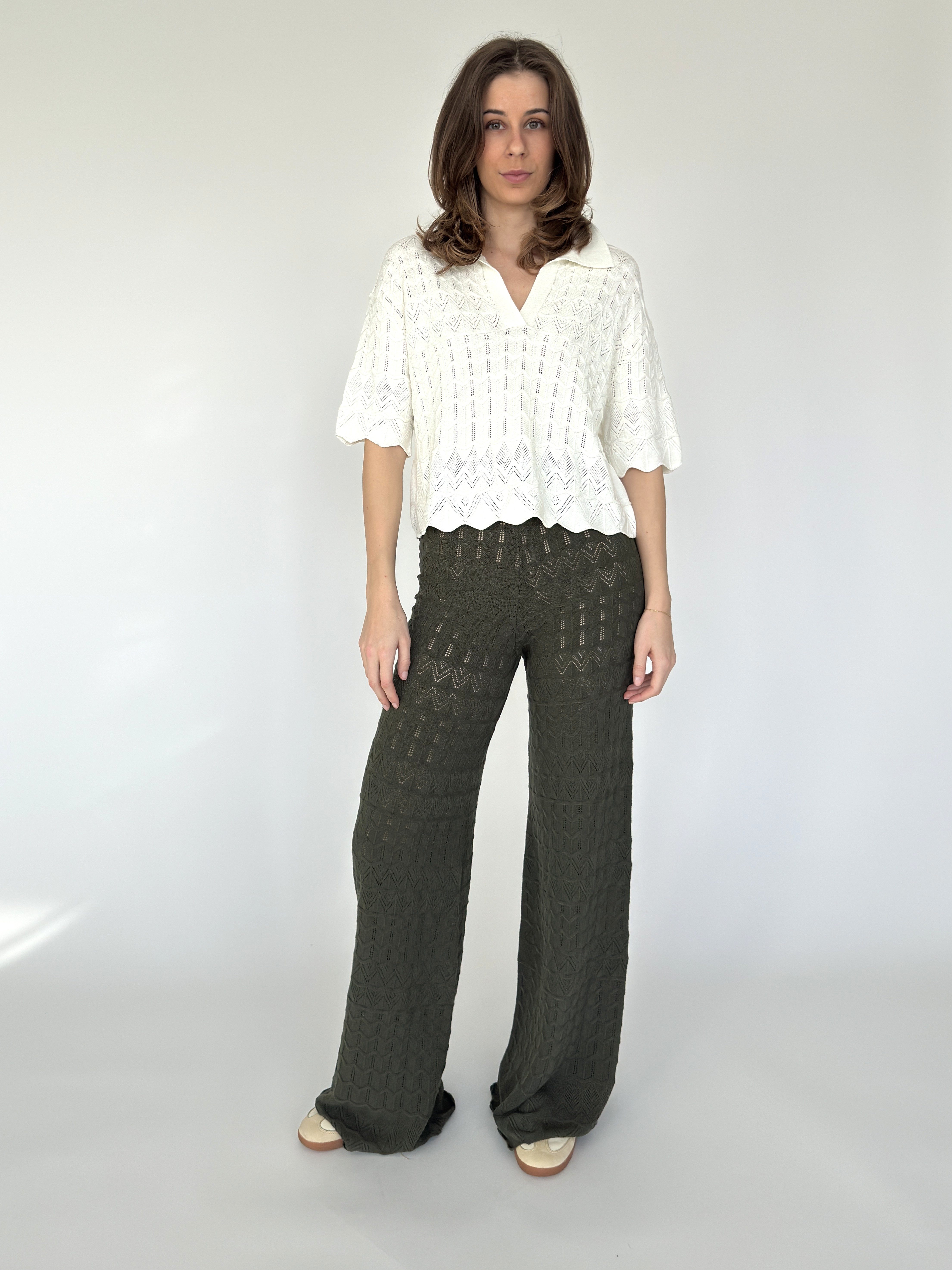 Besondere Merkmale | Ajourstrick mit weitem Bein aus Viskose mit Stretch |