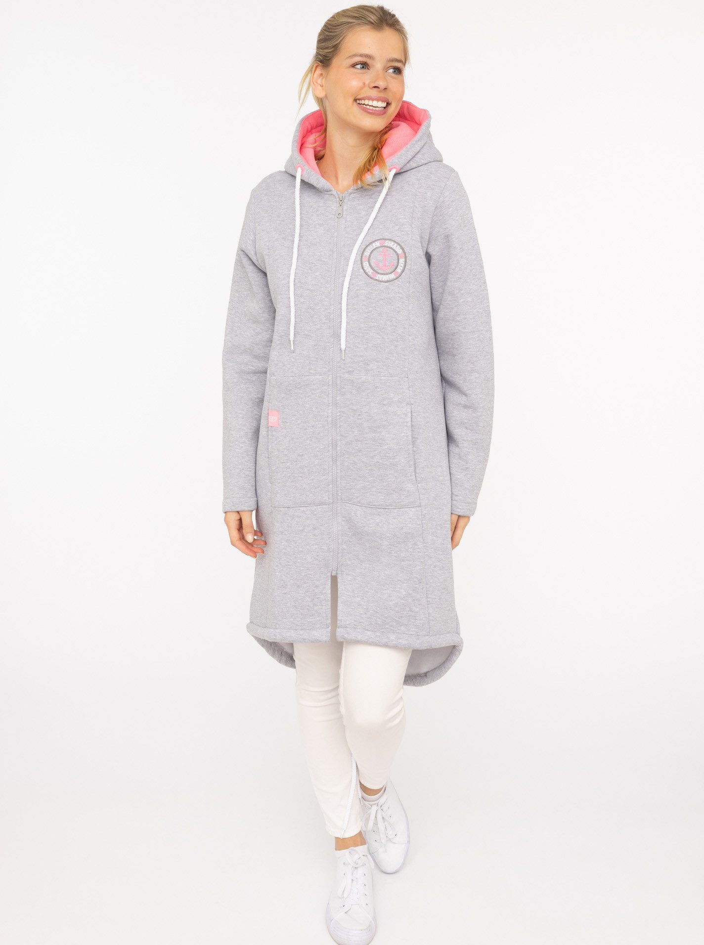 Der Mantel ist dank der Sweatware angenehm weich auf der Haut und hat einen hohen Tragekomfort.