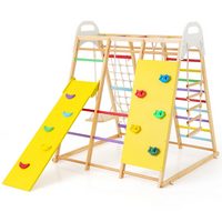 COSTWAY Baby Gym Spielbogen, mit 3 Kinderspielzeugen, klappbar, aus Holz