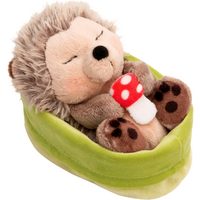 Nici Kuscheltier Sleeping Pets GREEN, Igel mit Fliegenpilz 12 cm hellgrün, schlafend im Körbchen