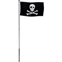 BRUBAKER Fahne Aluminium Прапориmast inkl. Piratenflagge 150 x 90 cm (Set, All-In-One Прапориmast-Set), Flaggenmast mit Bodenhülse und Piratenfahne für Camping - Deko Piraten