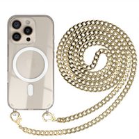 EAZY CASE Handykette 2in1 Metallkette MagSafe Hülle für iPhone 16 Pro 6,3 Zoll, Handyhülle Transparent Smartphonekette für Unterwegs Necklace in Gold