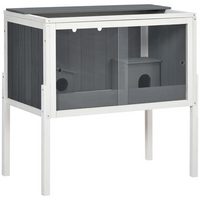 PawHut Kleintierstall aus Teerpappe Massivholz, Grau+Weiß, 90 x 45 x 65 cm
