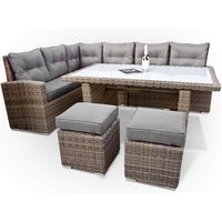 Ragnarök Меблі-Design Gartenlounge-Set Dining Lounge Wieland L, (Set, Ecksofa + Tisch + Hocker, Polyrattan, inkl. aller Polster), Sitzpolster ca. 16 cm dick