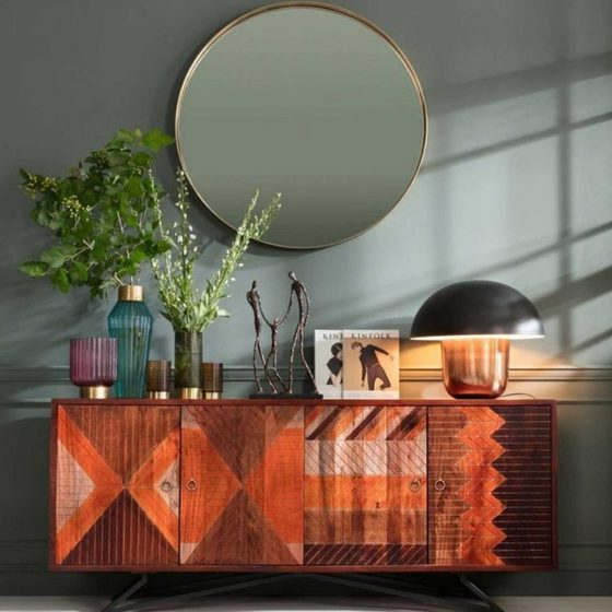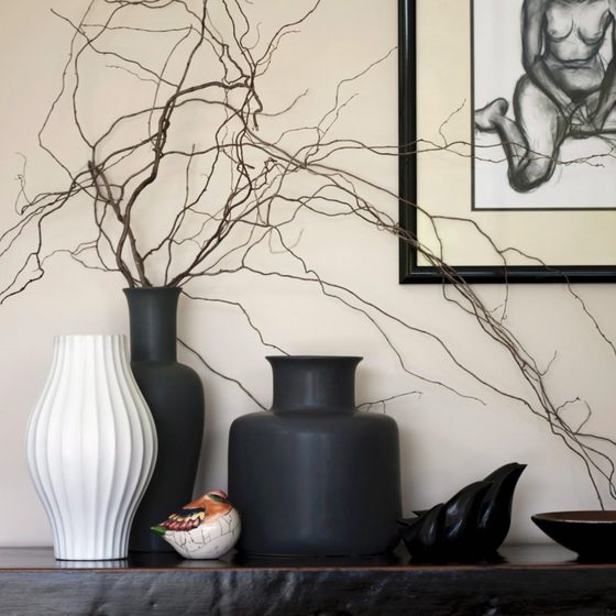 Ob mit oder ohne Blumen – Vasen eignen sich für eine stilvolle Sideboard-Deko. Besonders toll und harmonisch sieht es aus, wenn du mehrere Vasen im gleichen Stil kombinierst.